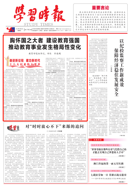 新時代新征程,教育的先導性、基礎性、全局性地位作用更加凸顯。新的趕考路上,教育系統要更加緊密地團結在以習近平同志為核心的黨中央周圍,以習近平新時代中國特色社會主義思想為指導,深刻領會“兩個確立”的決定性意義,增強“四個意識”、堅定“四個自信”、做到“兩個維護”,弘揚偉大建黨精神,推動教育高質量發展,加快推進教育現代化、建設教育強國、辦好人民滿意的教育,以實際行動迎接黨的二十大勝利召開,為實現中華民族偉大復興作出新的更大貢獻。(本文刊發于《學習時報》2022年05月06日第1版)