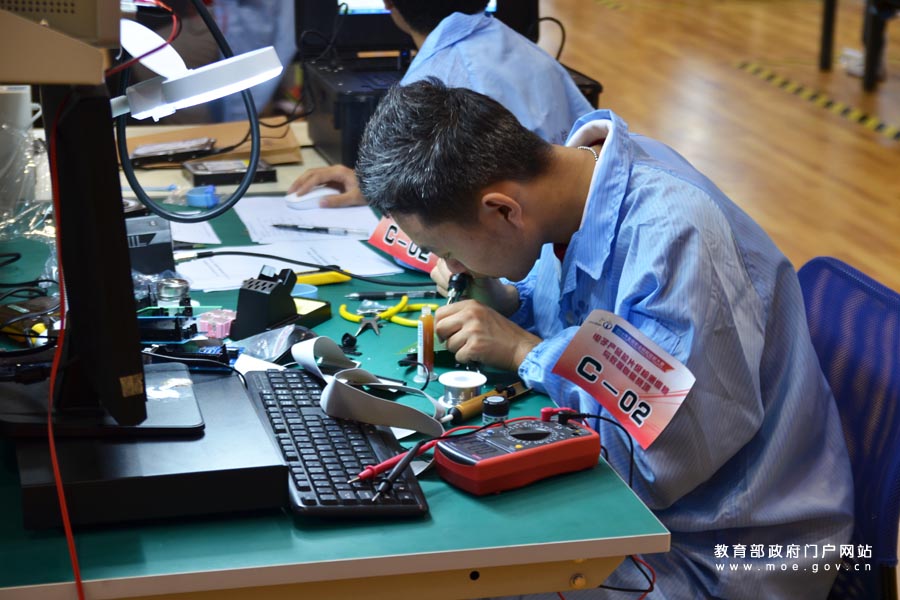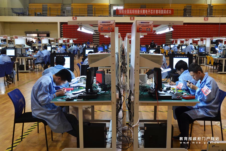 1/05月8日,2016年職業教育活動周全國啟動儀式暨全國職業院校技能大賽在天津開幕。各職業技術院校組成的參賽隊伍,展示了豐富多彩的職業教育教學成果。今年的活動主題為“弘揚工匠精神 打造技能強國”。在天津主賽區和15個分賽區舉行,近500萬名職業院校學生報名參賽。(樊世剛/攝 李娜/文)