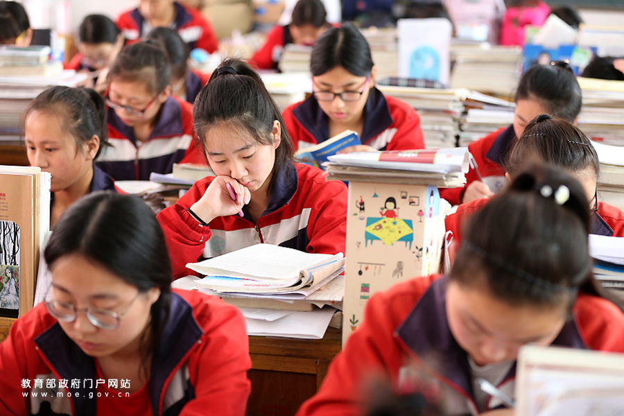 2016年高考臨近,考生復習進入最后沖刺階段。圖為河南省溫縣一中高三學生在教室里復習備考。(徐宏星/攝)