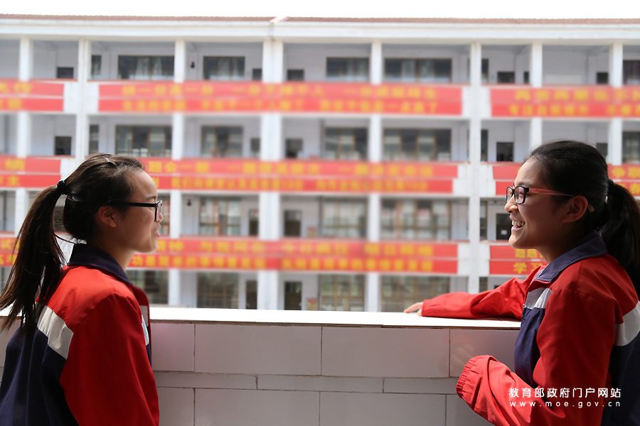 高三學生利用課間在走廊里輕松討論問題。(徐宏星/攝)