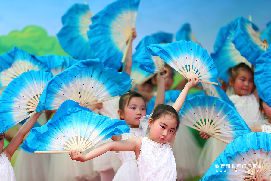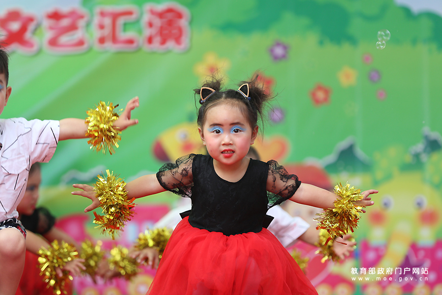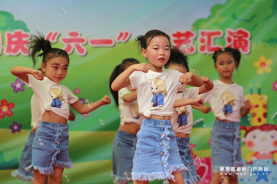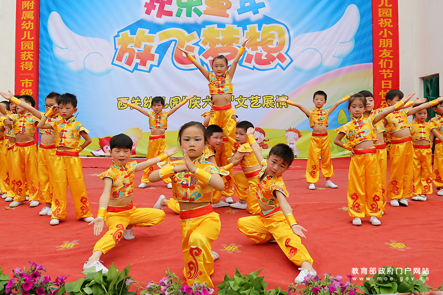 河南省溫縣實驗二小附屬幼兒園的小朋友們在表演舞蹈。(徐宏星/攝)