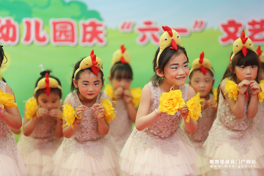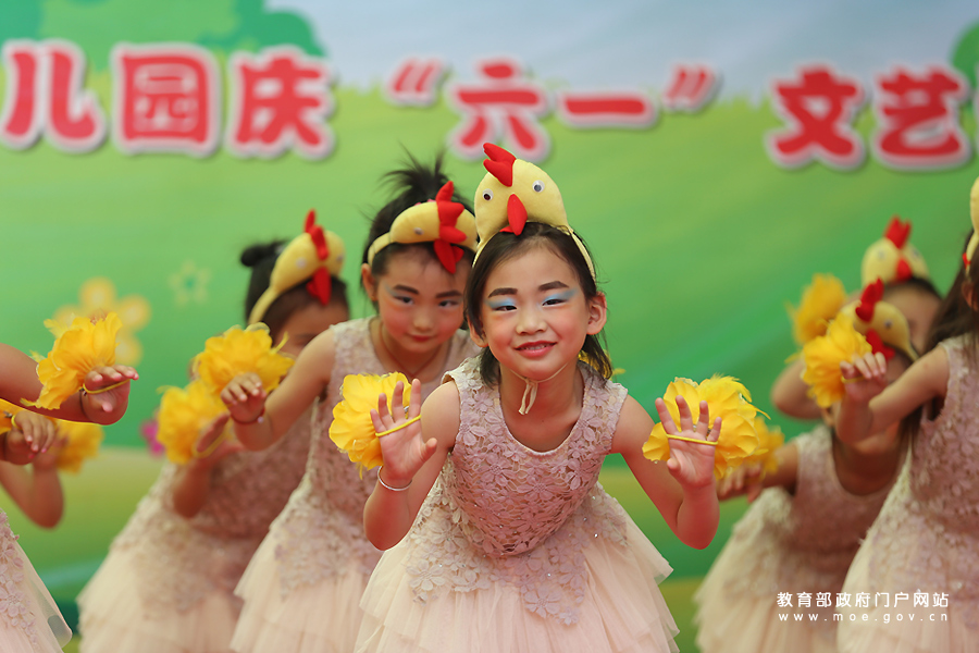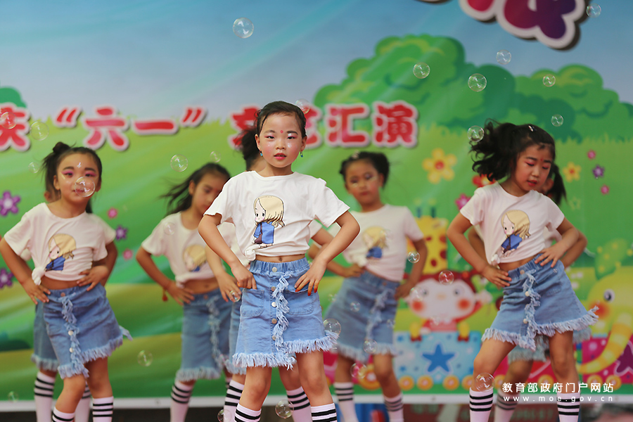 5月31日,河南省溫縣多家幼兒園紛紛組織孩子們歡聚一堂,載歌載舞,喜迎“六一”兒童節。(徐宏星/攝)