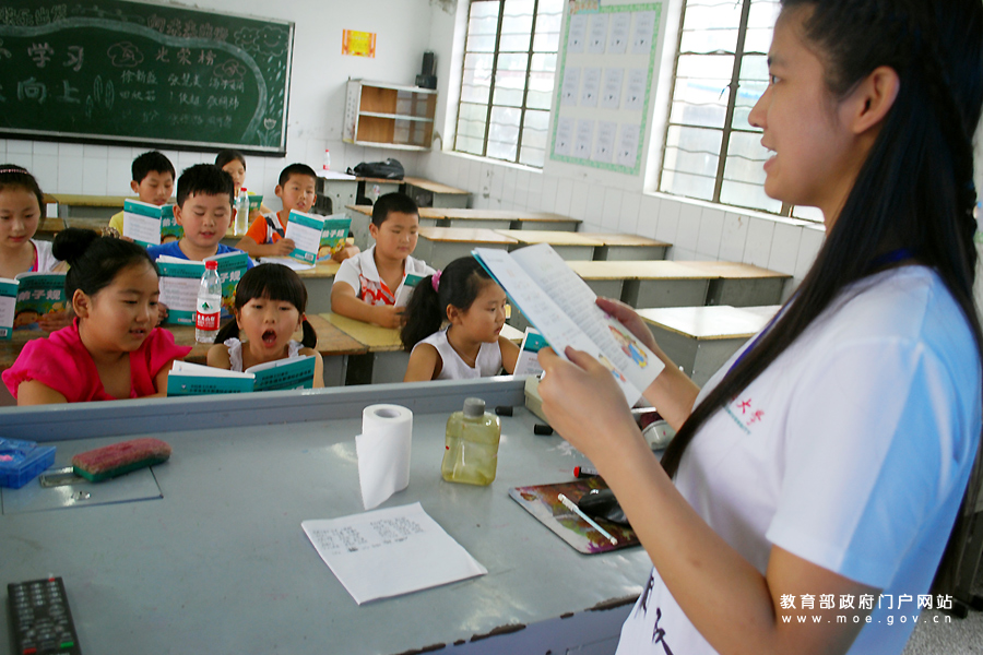 志愿者在指導留守兒童閱讀《弟子規》。近日,江蘇大學邵仲義支教團10名大學生志愿者來到該校對口扶貧的淮安市朱橋鎮,利用暑假開展為期半個月的支教活動,志愿者為當地30多名留守兒童開設閱讀、美術、手工、科學、電腦等課程,為留守娃們提供學習幫扶與愛心關懷,豐富孩子們的暑期生活。(石玉成 丁永萍/攝)