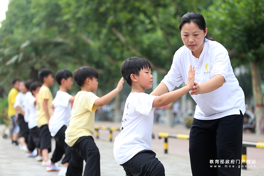 河南省溫縣太極拳名師鄭彩霞在指導小學員習練太極拳。(徐宏星/攝)