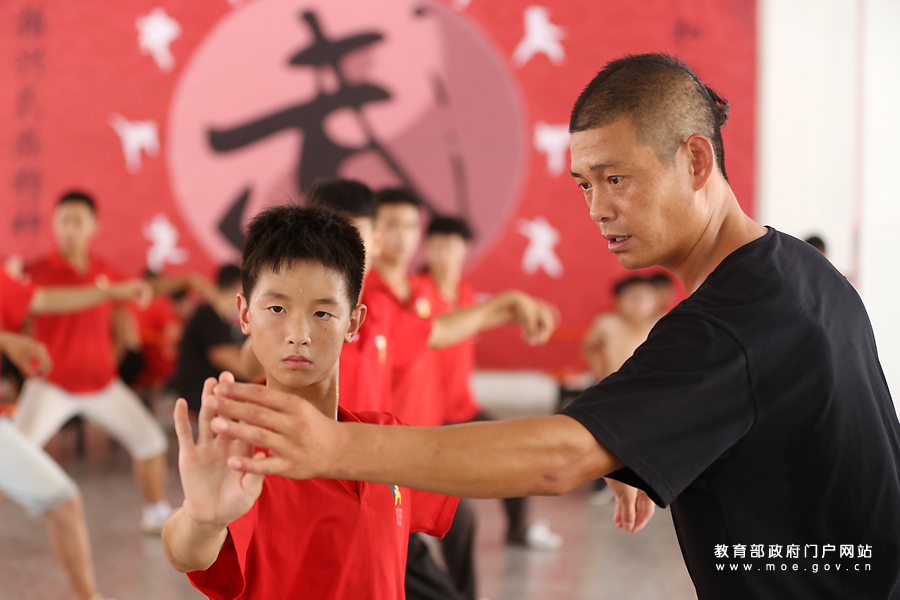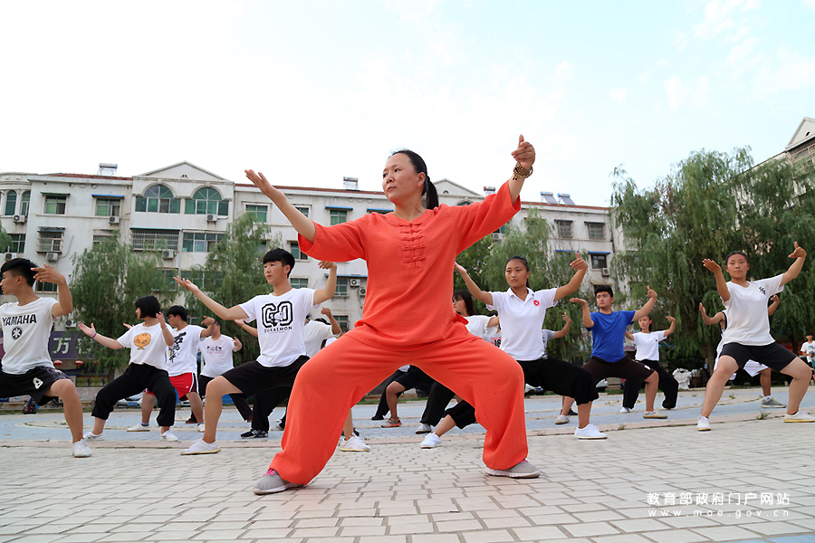 河南省溫縣職教中心張寶忠太極武院的教練在指導學員習練太極拳。(徐宏星/攝)