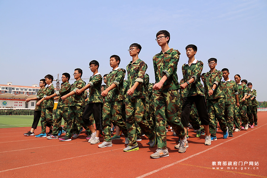 溫縣一中高一新生在教官指導下進行正步訓練。(徐宏星/攝)