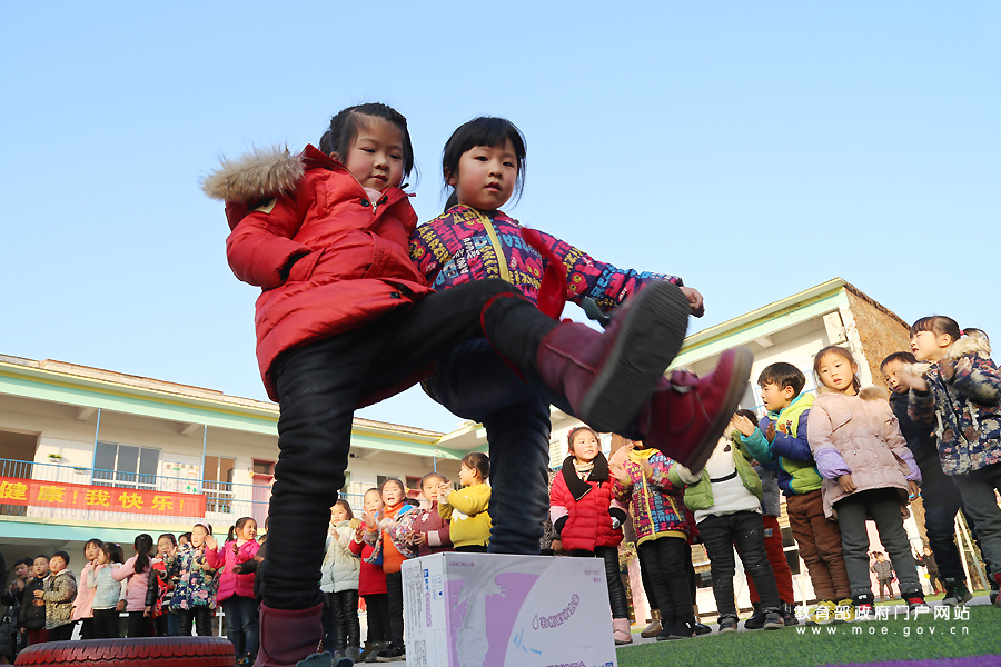 河南省溫縣縣直機關幼兒園在冬日晴朗的天氣里,組織孩子們開展“我運動、我健康、我快樂”為主題的冬季趣味運動會,讓孩子們在游戲中體會快樂,在快樂中盡情運動,以增強幼兒體質,促進幼兒健康快樂成長。(徐宏星/攝)