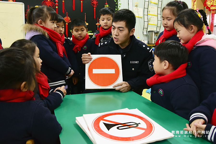 1月5日,江蘇省鎮江市解放路幼兒園開展“幼兒學交通安全知識”活動,邀請京口交警大隊的交警通過交通安全標識、模擬紅綠燈等,指導小朋友學習交通安全知識,增強孩子們的交通安全意識。(石玉成 巫娟/攝)