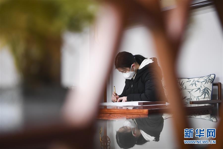 2月6日,重慶市云陽縣第三初級中學一年級學生吳雨燦在家中練習書法。(新華社記者 王全超/攝)