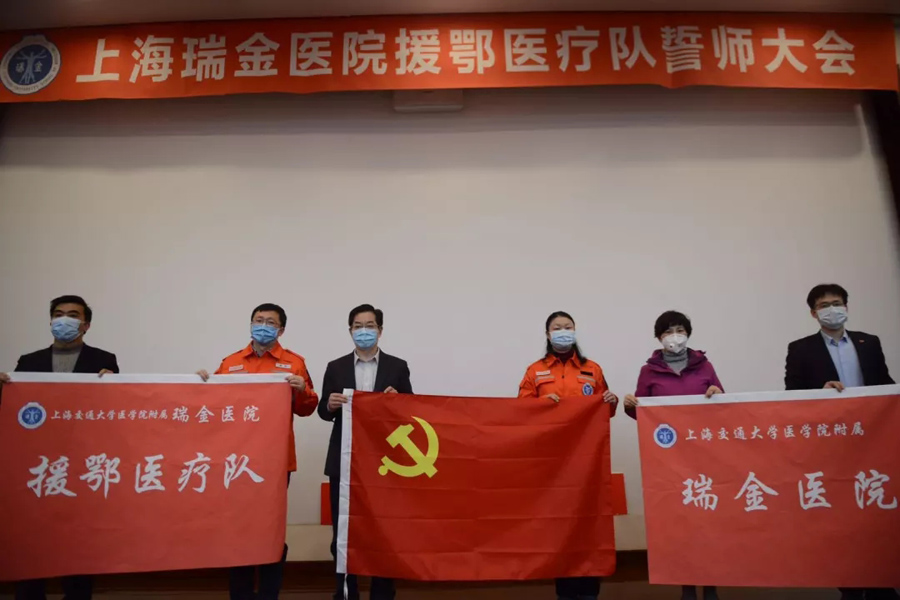 2月9日,按照國家衛生健康委統一部署,由上海交大醫學院附屬瑞金醫院副院長胡偉國帶隊的136人瑞金醫院第四批支援武漢醫療隊出征。醫療隊由30名醫生(其中24名黨員),100名護士和6名行政管理人員組成,涵蓋重癥醫學科、呼吸科、感染科、護理等學科,其中有66個黨員,33個團員。為了千萬的生命,為了心中的誓言,國有戰,召必應,戰必勝。