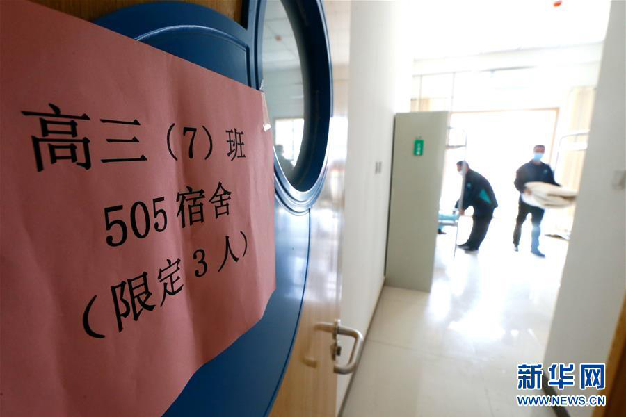 4月14日,山東省青島通濟實驗學校的老師在整理學生宿舍,該校規定每間宿舍住宿學生不超過3人。(新華社發 梁孝鵬/攝)