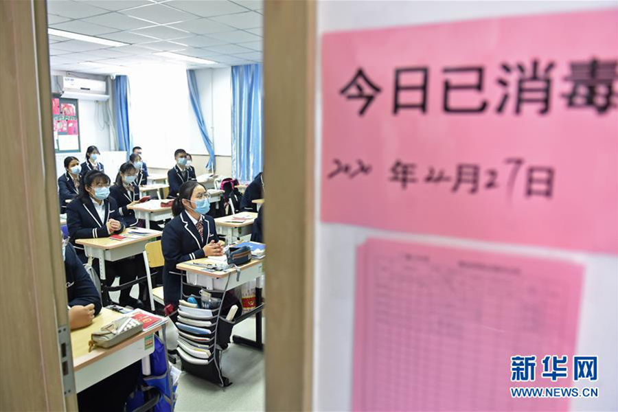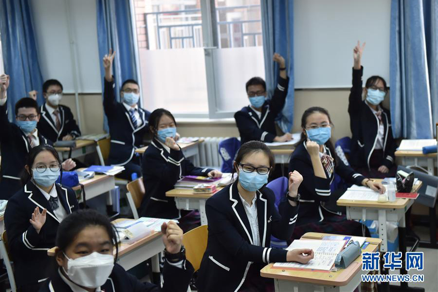 4月27日,在位于北京市海淀區的中國農業大學附屬中學,高三年級學生在教室中上課。當日,北京市高三年級學生開學復課。(新華社記者 任超/攝)