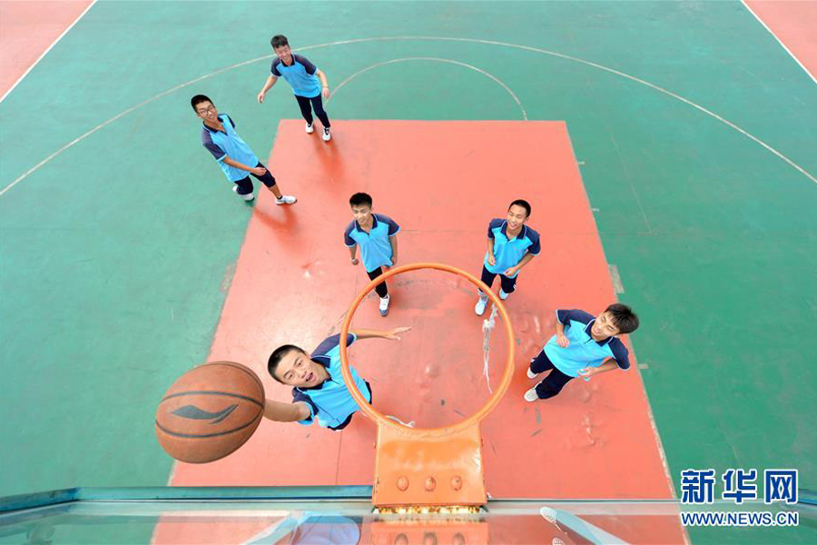 6月22日,河北省邯鄲市邯山區第一中學的高三學生在操場上打籃球。(新華社記者 王曉/攝)