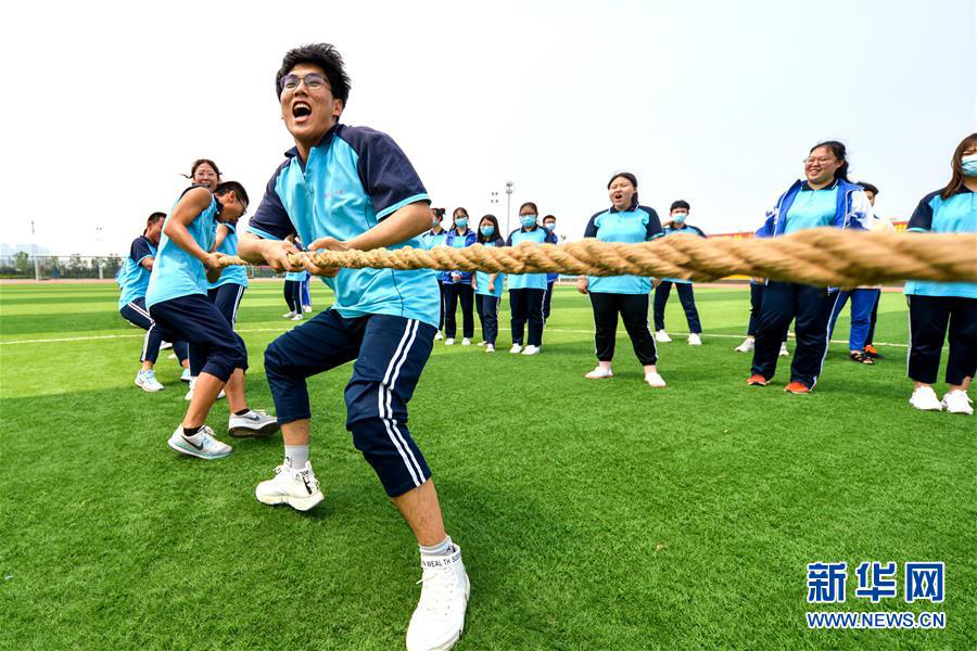 6月22日,河北省邯鄲市邯山區第一中學的高三學生在進行拔河比賽。(新華社記者 王曉/攝)
