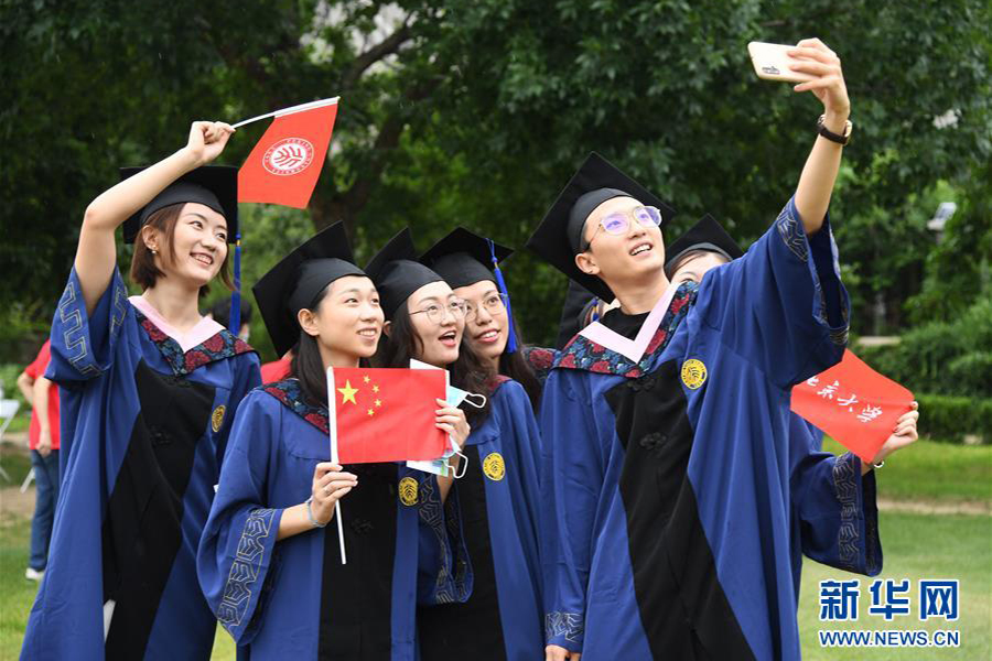 7月2日, 北京大學2020屆畢業生在畢業典禮結束后拍照留念。(新華社記者 任超/攝)