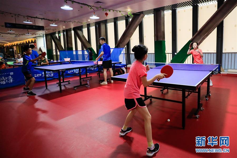8月5日,孩子們在河北省唐山市豐南區一所少兒活動中心練習乒乓球。(新華社發 李秀清/攝)