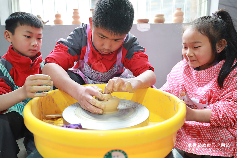 3月25日,貴州省遵義市播州區楓香鎮茍壩小學學生在少年宮“花泥坊”里學做土陶。(鄭啟彥 張學軍/攝)