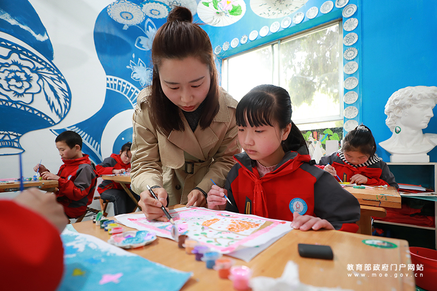 3月25日,貴州省遵義市播州區楓香鎮茍壩小學學生在“畫味室”里學繪畫。(鄭啟彥 張學軍/攝)