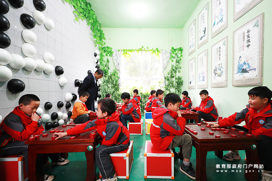 3月25日,貴州省遵義市播州區楓香鎮茍壩小學學生在少年宮 “棋藝室”里縱橫對弈。(鄭啟彥 張學軍/攝)