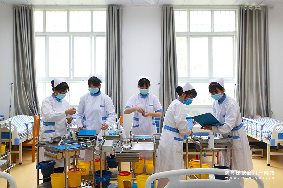 3月25日,貴州省遵義市播州區中等職業學校護理專業學生在進行實操訓練。(鄭啟彥 張學軍/攝)
