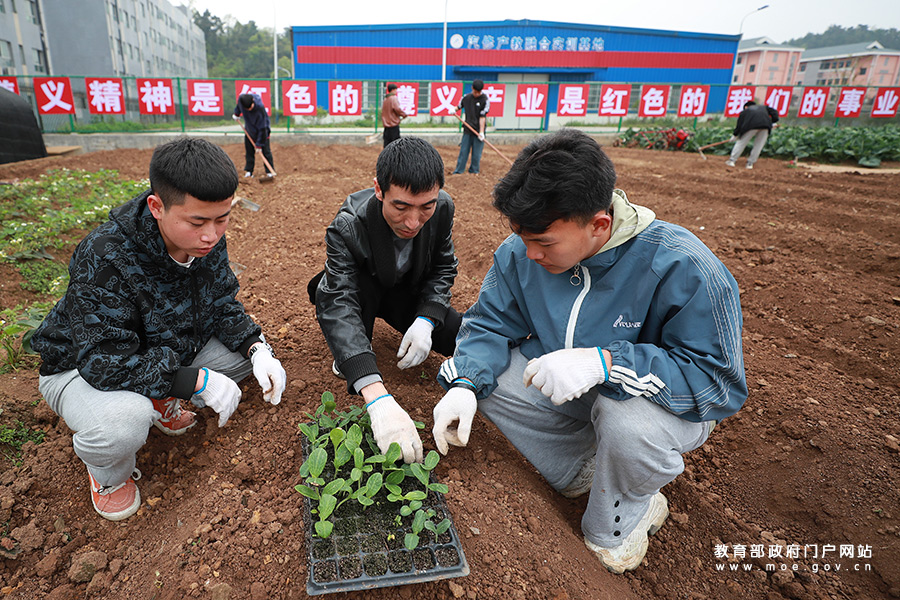 3月25日,貴州省遵義市播州區中等職業學校農科基地,學生們在培育蘑菇。(鄭啟彥 張學軍/攝)