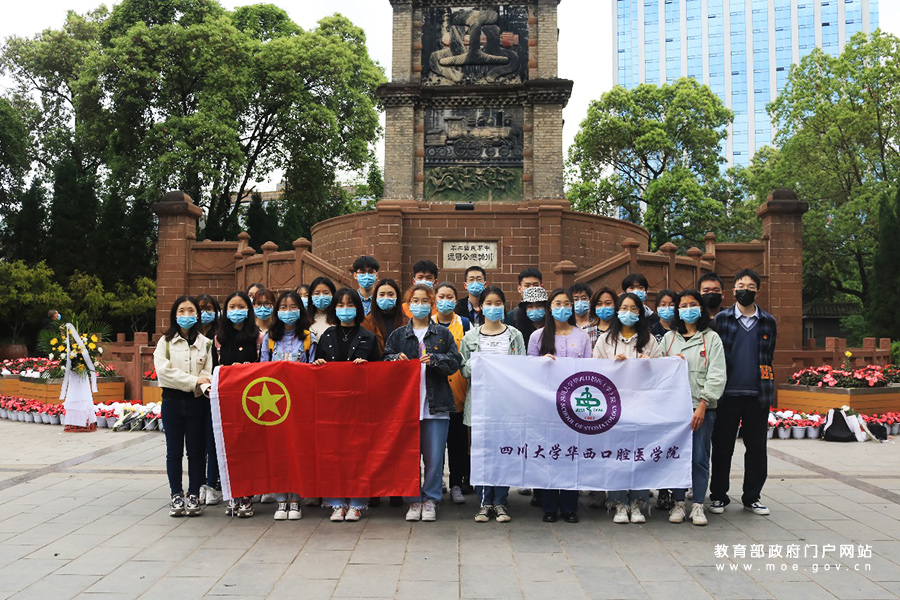 4月2日,四川大學華西口腔醫學院師生參加清明祭英烈主題教育活動。在四川大學華西校區毛英才烈士塑像前,師生代表緬懷革命英烈,重溫醫學生誓詞,立志成為擔當民族復興大任的時代新人。(陳元明/攝)
