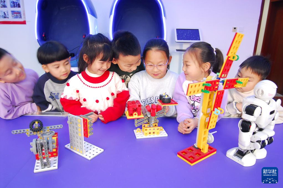 1月23日,孩子們在山東省青島市即墨區環秀街道墨香郡社區參加“寒假快樂課堂”。(新華社發 張濤/攝)