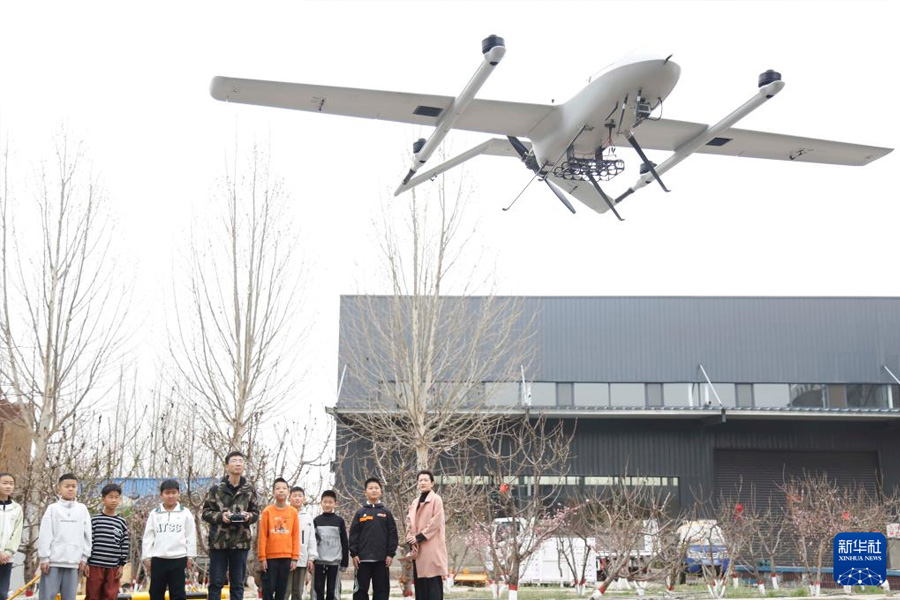 3月23日,河北省邢臺市南和區氣象局工作人員為學生普及氣象無人機知識。(新華社發 張馳/攝)