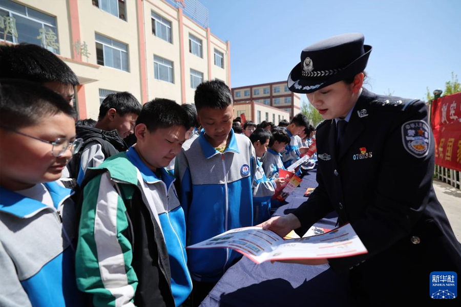 4月14日,警務人員在河北省遵化市第一中學給學生講解國家安全知識。(新華社發 劉滿倉/攝)