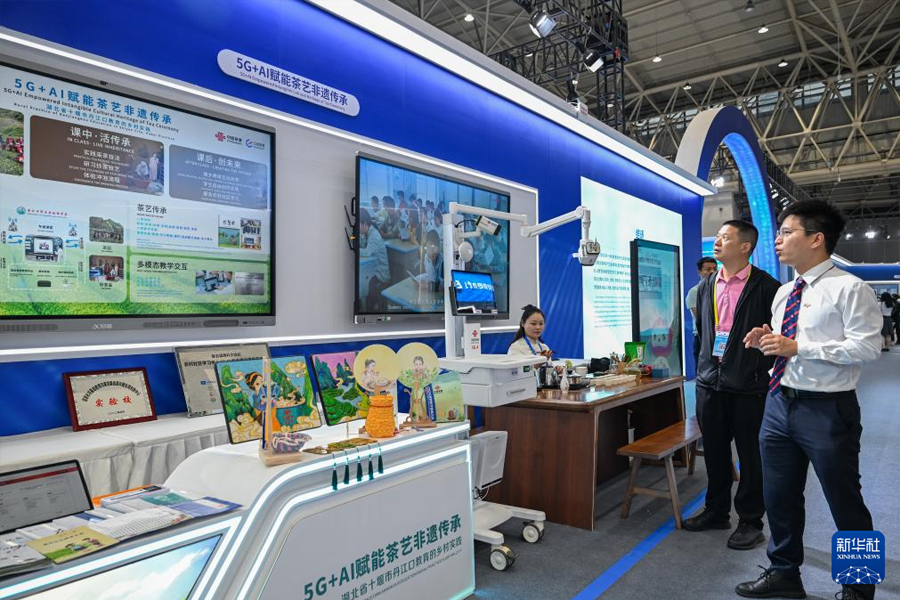 5月14日,參觀者在2025世界數字教育大會教育數字化成果展上參觀。(新華社記者 杜子璇/攝)