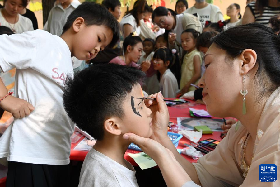 5月28日,在山東省濱州市博興縣第三中學,高三學生在操場上做減壓游戲。(新華社發 陳彬/攝)