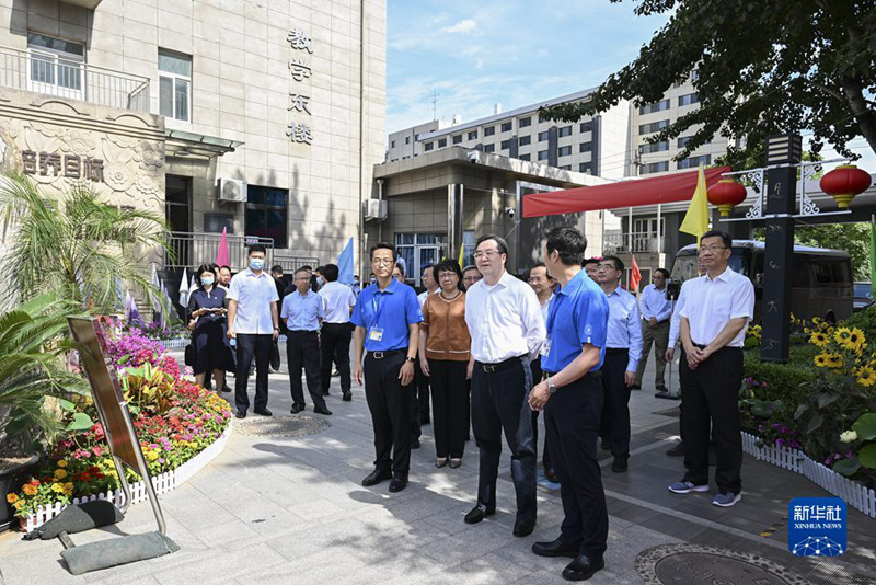 6月3日,中共中央政治局常委、國務院副總理丁薛祥到北京市和教育部教育考試院檢查2023年高考準備工作。這是丁薛祥來到北京交通大學附屬中學考點,察看考務組織各環節工作情況。(新華社記者 張領/攝)
