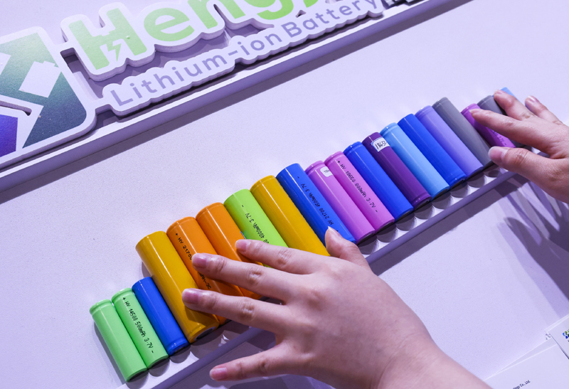 參展商在第135屆廣交會新能源展區布置鋰電池展品(2024年4月15日攝)。(新華社記者 劉大偉/攝)