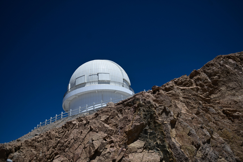 這是在青海省海西蒙古族藏族自治州茫崖市冷湖鎮賽什騰山拍攝的中國科學技術大學和中國科學院紫金山天文臺聯合研制的大視場光學成像望遠鏡——墨子巡天望遠鏡(2024年4月20日攝)。(新華社記者 張龍/攝)