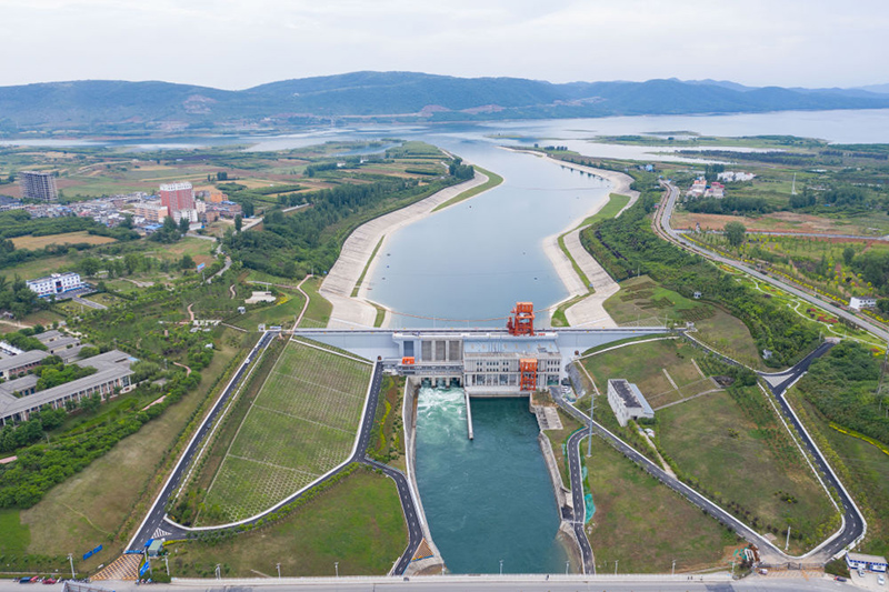 這是2021年5月20日在河南省南陽市淅川縣拍攝的南水北調中線工程陶岔渠首(無人機照片)。(新華社記者 才揚/攝)