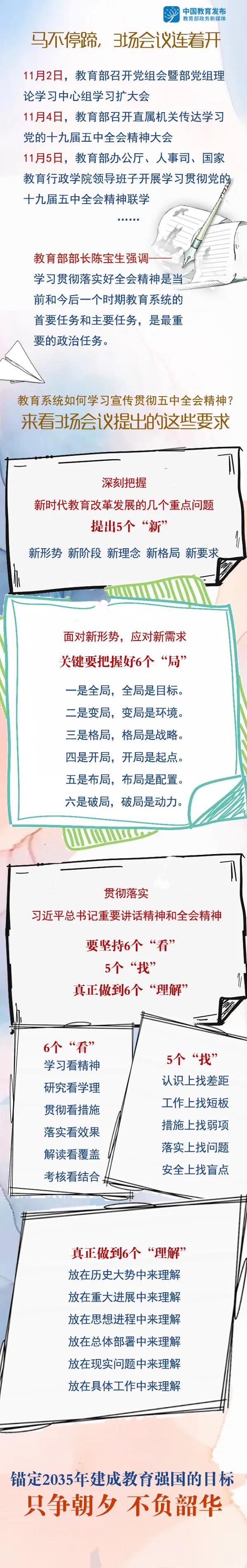 連日來,教育部連續召開會議,從黨組、機關到直屬單位,都迅速行動、精心部署學習宣傳貫徹五中全會精神——